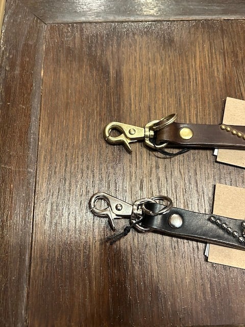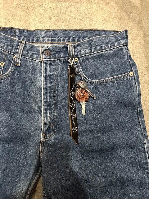 15mm幅、全長約240mm(金具込み)のコードキーリング、存在感のあるアイテムですのでベルトループに付けたり、お財布やウォレットチェーンのエンドに付けても雰囲気良しです。