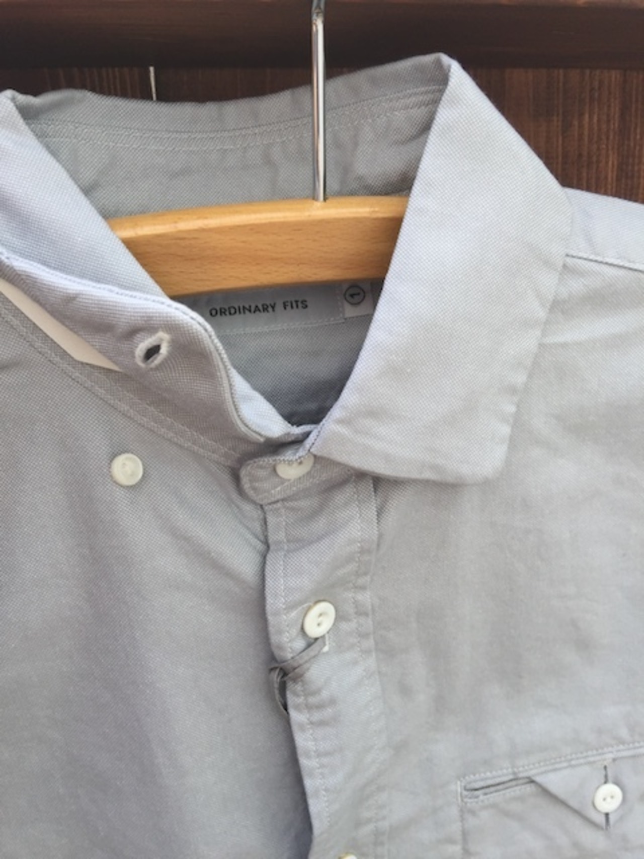 通年ご使用いただけるしっかりとした生地感のコットン素材で仕上げられた ordinary fitsの定番のインビジブルボタンダウンシャツ。2枚で仕上げた丸みのある衿裏にボタンホールを設けることで、ボタンダウンであることを隠す仕様になっています。また、左ポケットの三角フラップ、シャツなのに内ポケットを備えているところなど、他にはないディテールが魅力。脇のチェーンステッチや、裾の空環仕上げなどヘビーユースにも耐えられる品質になっています。さりげなく個性を演出でき、ベーシックで、着回し力が高いおすすめのアイテムです。