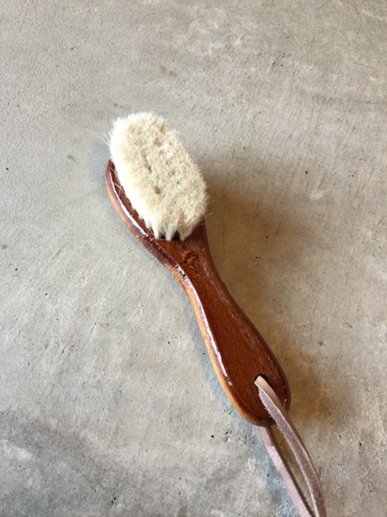 馬毛や豚毛よりはるかに柔らかく、細い羊毛を使用したブラシ。靴磨きの仕上げやツヤ出し、帽子、アウターのほこり落とし等にも使用出来る優れものです。