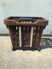 大容量のランドリーカート、バスケットトロリーです。トロリーの名前のとおりキャスターが付いていて、キャリーバッグのようにハンドルを持ってラクラク移動できるという作りになっています。この手の入れ物は、どうしてもホームセンターっぽさを感じちゃう製品が多いだけに、こんなオシャレな外国っぽいデザインは貴重な存在。洗濯物を運んだりするのはもちろん、週末のバーベキュー、キャンプなど外遊びでも活躍するアイテムです。