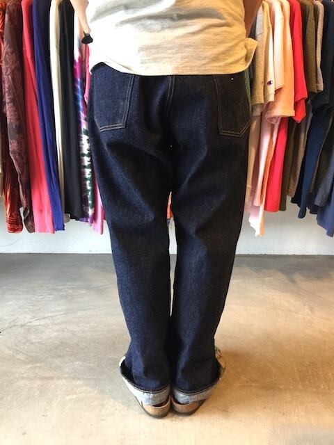 オーディナリーフィッツ定番のファーマーズ5Pデニムです。素材にはルーズ気味にざっくりと編まれたセルヴィッチデニムを使用。アンクルデニムとは違う生地となり、少し粗い質感です。厚みがありながらも柔らかく、穿き始めからしっくりと馴染むような穿き心地も特徴。股上を深く設定し、腰回りの程よいフィット感がありつつ、ゆったりとしたワイドストレートシルエット。フロントはボタンフライの仕様。前立て部分にはリベットが打たれてます。またバックスタイルにはシンチバック付き、ポケットのリベットなど、ヴィンテージを思わせる細かな仕様です。