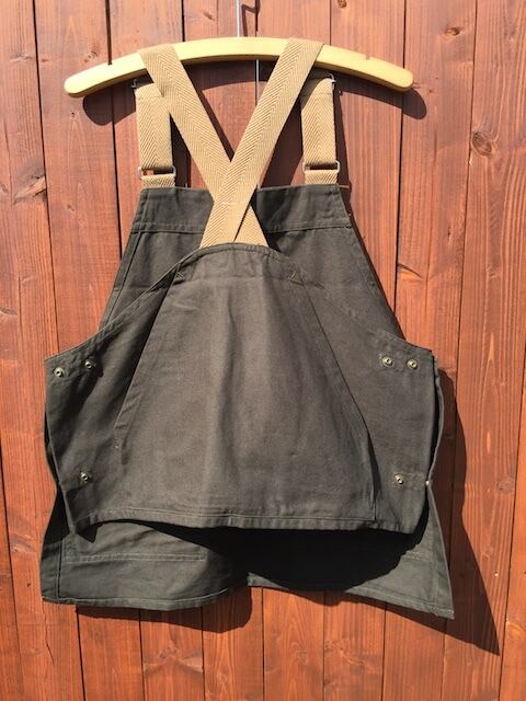 ハンティングベストをベースにした、フロントに4種のポケットと、バックにゲームポケットを装着したモデル。肩の負担を軽減 するためベルト素材のストラップを採用し、ドット釦で身幅を調節出来るようにしたモデルとなります。身幅は左右それぞれ上が3段階、下が2段階で調整可能です。Bカンが付いているのでカラビナ等を引っ掛ける事が出来ます。
