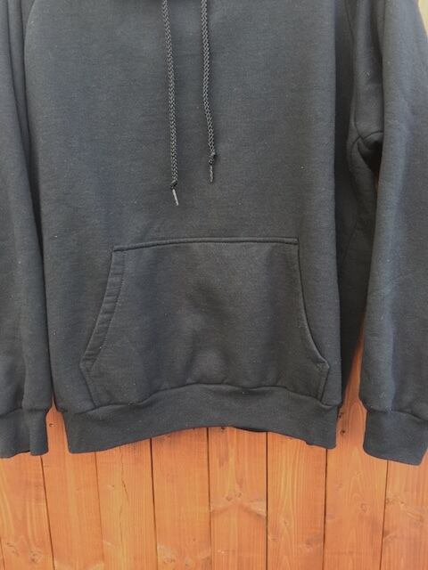 フードはスウェットの2枚仕立てで、きれいな立ち上がりを見せるボリューム感です。アメリカ製ならではの、丈夫な質感と、ゆったりとしたシルエットとなります。