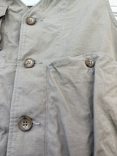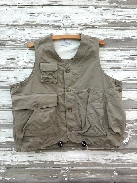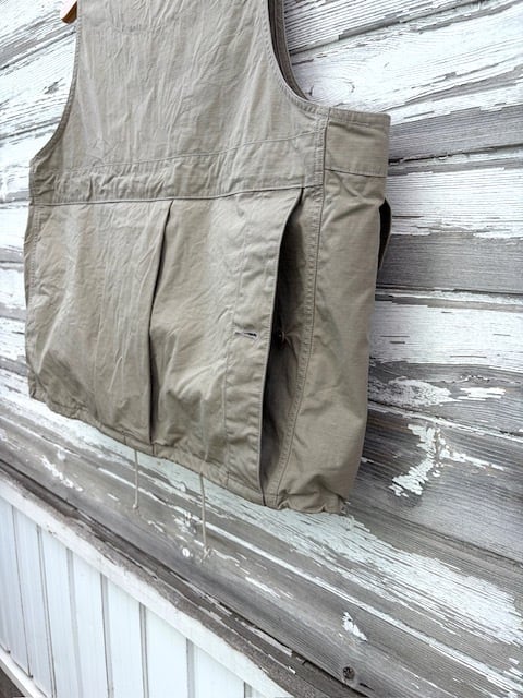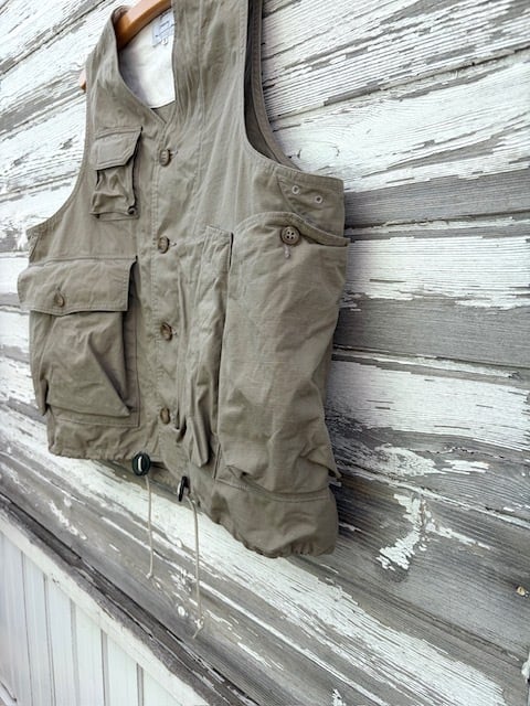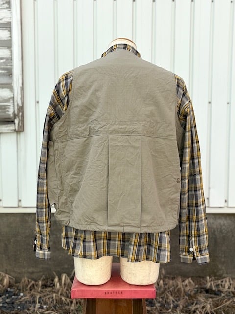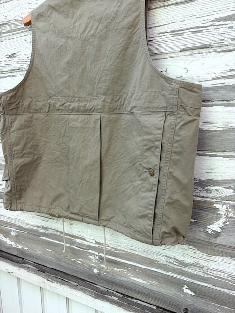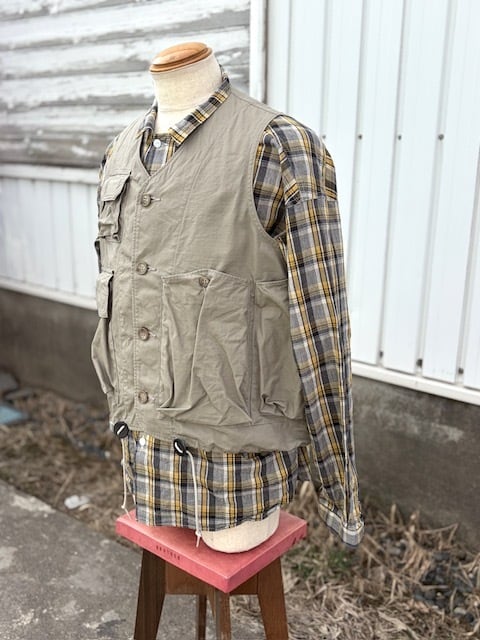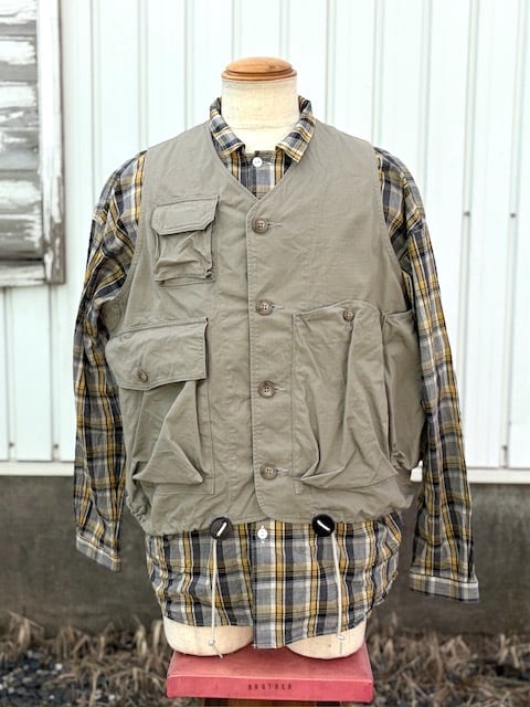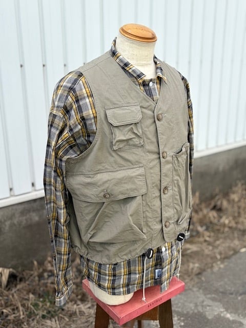 ヴィンテージのフィッシングジャケットをベースに、現代的に再構築したアイテムで、短丈で幅広のBOXシルエット。ミリタリーベースではなくフィッシングジャケットがベースというところもポイントです。背中には右から手を入れれるバックポケットが付きますので、自転車やバイクでちょっと買い物の際にもカバン要らずです。