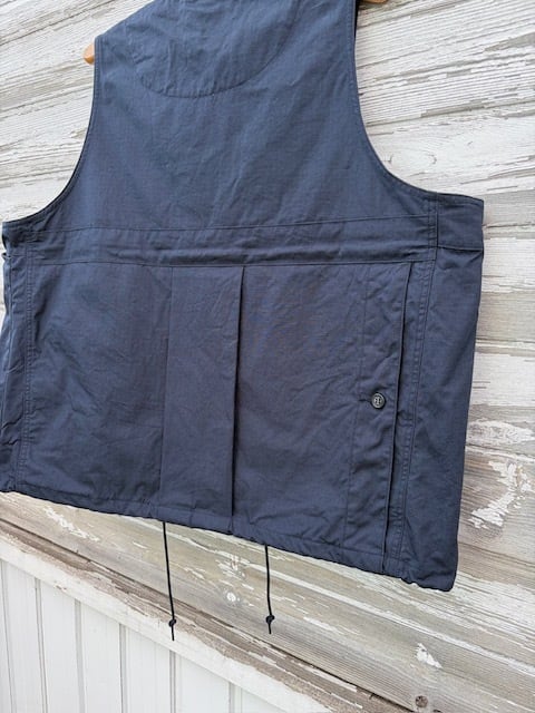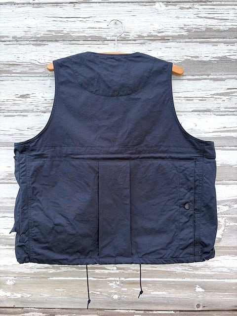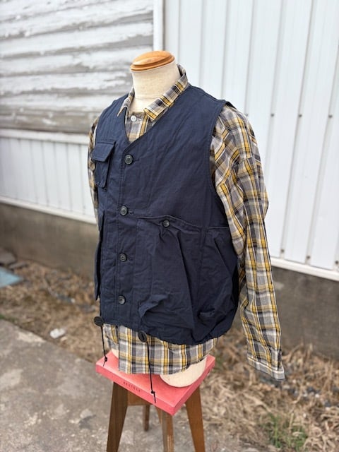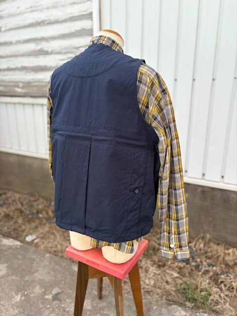 ヴィンテージのフィッシングジャケットをベースに、現代的に再構築したアイテムで、短丈で幅広のBOXシルエット。ミリタリーベースではなくフィッシングジャケットがベースというところもポイントです。背中には右から手を入れれるバックポケットが付きますので、自転車やバイクでちょっと買い物の際にもカバン要らずです。