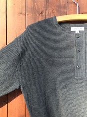 コットン素材かと思うような質感と肌触りのワッフルヘンリーネックニットです。素材はウール100%ですが、チクチク感は全くありません(SUPER120'sのウール素材を使用)。袖口、裾周りは編み地を変え少しテンションを絞ってあります。ニットとして一番上に着る使い方も出来ますし、ヘンリーTのようにインナー使いも出来るアイテムです。少しゆったりと着れるシルエットに仕上がっています。洗濯も可能なウォッシャブルニットです。