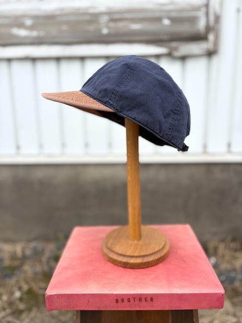 クラウン(帽体)にチノ素材、ブリム(ツバ)にオックス素材と、色だけでなく素材も2種類の異組織生地を使用した配色のキャップです。