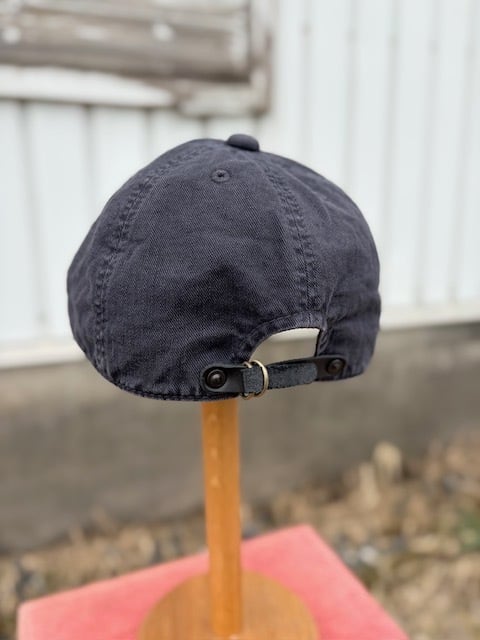 背面のサイズ調整ベルトにはブラックのレザーを使用しています。 異素材の組み合わせは経年変化も楽しみです。