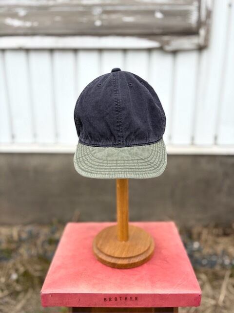 クラウン(帽体)にチノ素材、ブリム(ツバ)にオックス素材と、色だけでなく素材も2種類の異組織生地を使用した配色のキャップです。