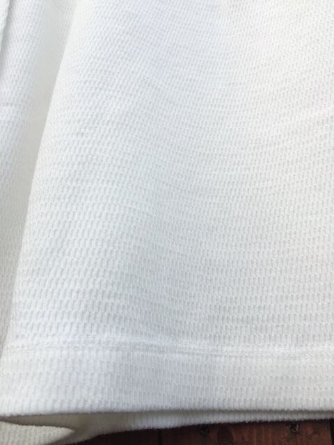 BETTER定番のハニカムサーマル。肉厚で頑丈に仕上げられた生地です。その厚さは、アンダーウェアに使うライトなサーマルとは違い1枚でトップスとしても使える素材感。ロンT以上、スウェット未満位の厚みと言えばイメージしやすいでしょうか。