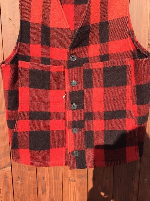 FILSONを代表する名品、マッキーノウールベストです。多数のポケットやハンドウォーマーポケットなど、機能美を感じさせる完成度の高さはフィルソン好きにはたまらない1枚。上質のバージンウールのみを使用した肉厚のウールメルトン生地なのでタフでいて保温力も抜群、1枚着るだけでかなり暖かいです。上部に日焼け、所々に小穴がございます。一般的には状態のあまり良くない中古品と言われそうですが、味が出ていて個人的にはとても良い経年変化だと捉えています。小穴はリペアも可能でございます。