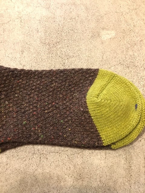 シンプルなデザインながらも、ネップの効いたボディーと、リブ・かかと・つま先とのカラーコントラストが印象的で、秋冬の足元をかわいく彩ってくれます。カラーの組み合わせはフレンチブルらしいチョイスで他にはないデザイン。