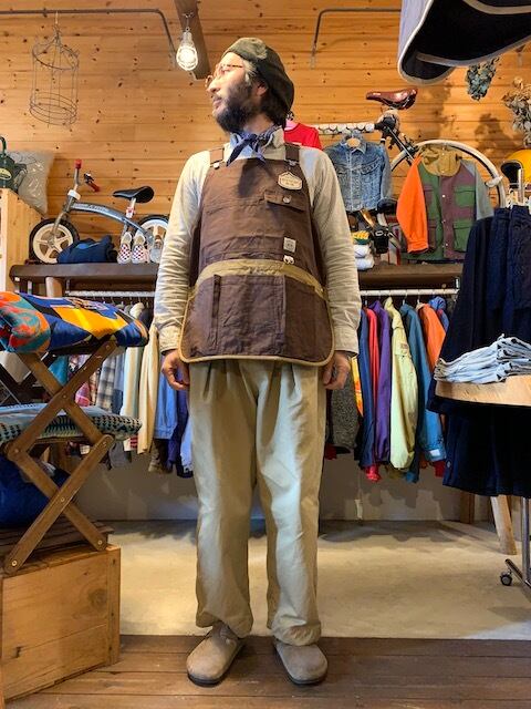 「1950念半ば、仕立て職人 のリチャードは趣味の登山が高じて、バックパックを背負ったままでも出し入れしやすい大きなポケット付きのビブスを考案した。」