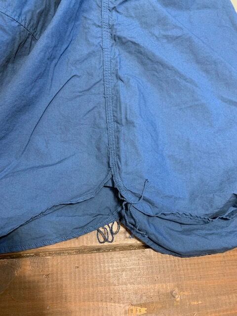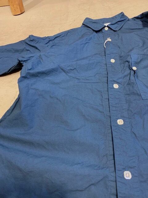 そんな定番アイテムのタイプライター素材をオーバーダイで仕上げています。色は大人っぽいsteel色。淡いネイビーのような、くすんだブルーのようなお色になっています。