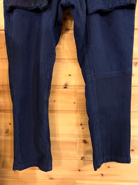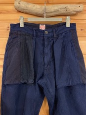 インディゴで染め上げた、刺し子・コーデュロイ・リップストップ・ヘリンボーンなど6種類の異素材を組み合わせ作られたパンツです。