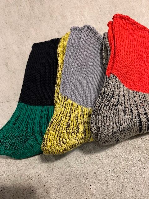 下部は複数の異なる糸で編み立てMIX感のある色味。上部はパキッとした色味でバイカラーとなります。
