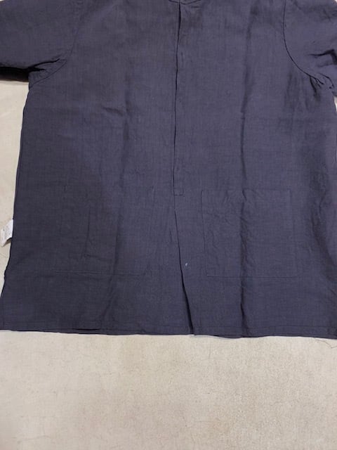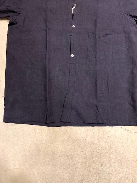 昨年からの継続の形で当店では初めての入荷。リネン100%でフロントのボタンは4つ。プルオーバーながらかなり深い所までボタンを外す事が可能です。