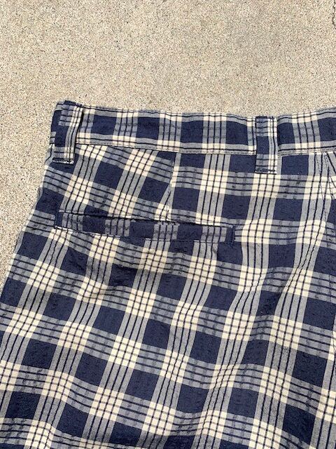 総柄なので分かりづらいですが、シアサッカー素材のパラカチェックで立体的な生地感です。