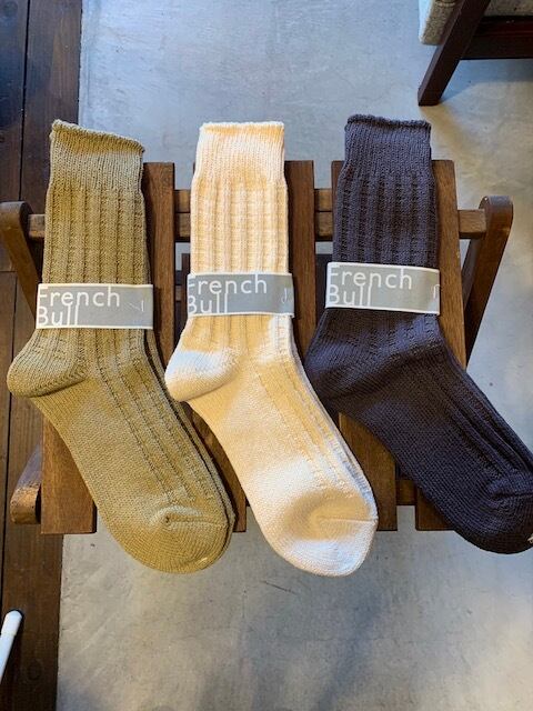 ワッフル生地のような凹凸のある編み柄で、厚さのあるソックスです。日本の紡績工場で発生した落ち綿を100%再生した、リサイクルコットン糸で編み立ててあります。