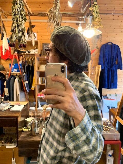 8welの太畝コーデュロイ生地を使用し秋冬らしい素材感が良い雰囲気。作りは8枚パネルで構成されたゆったりシルエットのワイドベレーとなります。オリジナルデザインのトップ部のレザーがワンポイント効いています。