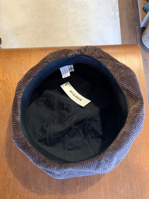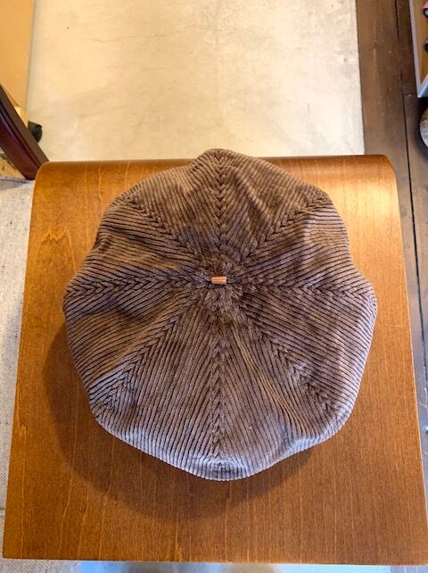 8welの太畝コーデュロイ生地を使用し秋冬らしい素材感が良い雰囲気。作りは8枚パネルで構成されたゆったりシルエットのワイドベレーとなります。オリジナルデザインのトップ部のレザーがワンポイント効いています。