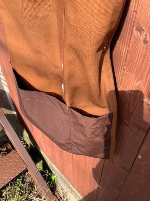 F:着丈前 約66.5cm、着丈後 約70.5cm、身幅最大 約56cm、ストラップ全長 約37cm