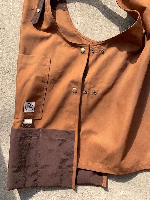 BIBの定番モデルMAHOGANY。ヴィンテージのランドリーバッグをイメージして作り上げられたBIBとなっております。素材はコットンの帆布とナイロン。色の濃い部分がナイロン素材です。