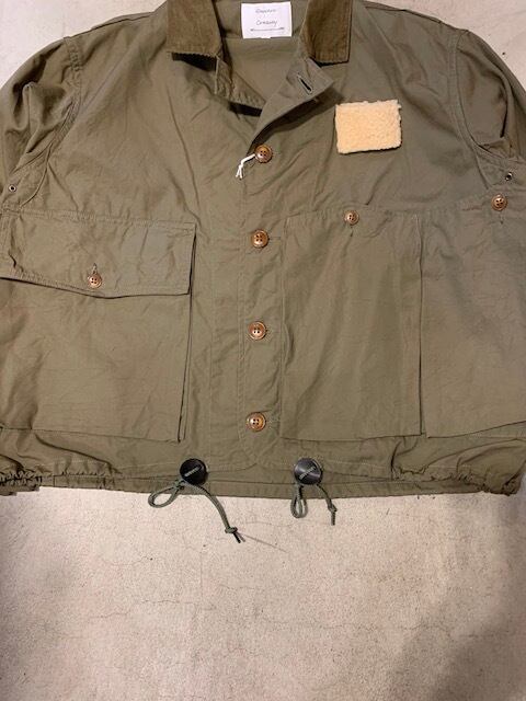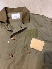 ヴィンテージのフィッシングジャケットをベースに、現代的な雰囲気で再構築したアイテムで、左胸に取り外し可能なムートンパッチが付きます。リアルにフライフィッシングに使うも良し、お好みのワッペンを付けたりバッジを付けても雰囲気良さそうです。