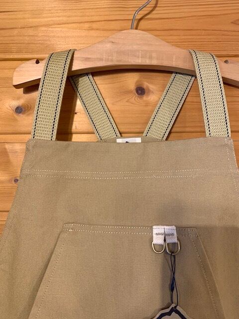 大人のモデルと同じような作りで仕上げてあり、肩は負担を軽減するためベルト素材のストラップを採用。両サイドはボタンで身幅を調節出来るようにしてあります。