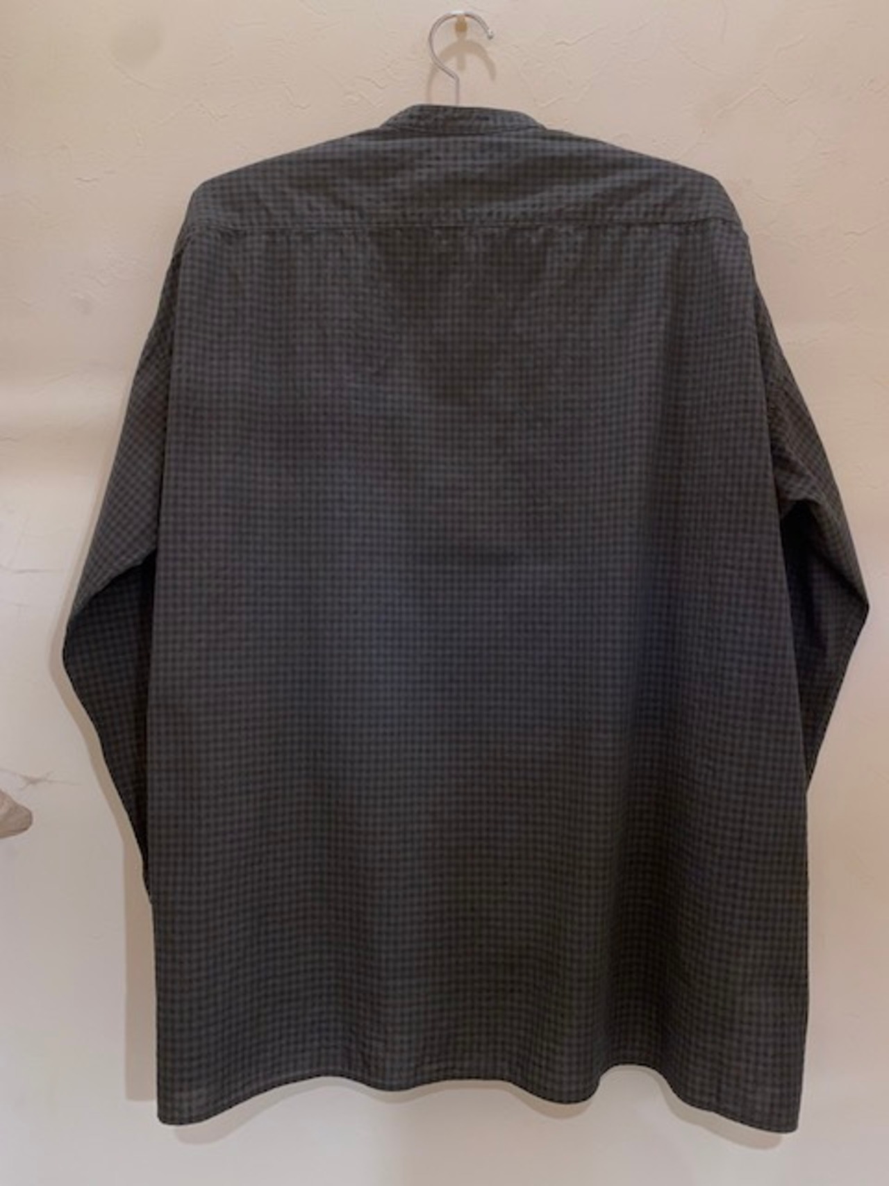 こちらはギンガム生地にオーバーダイを施しブラックに仕上げたもの。もとのギンガムも残しつつ絶妙なさじ加減で染め上げた雰囲気が魅力です。