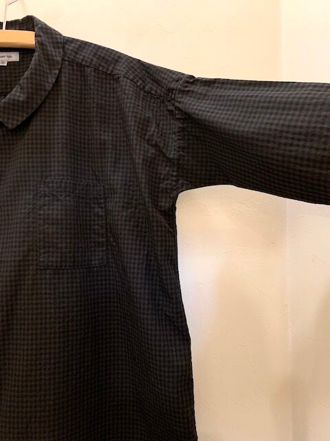 生地はギンガムチェックにオーバーダイを施しブラックに仕上げたもの。もとのギンガムも残しつつ絶妙なさじ加減で染め上げた雰囲気が魅力です。。
