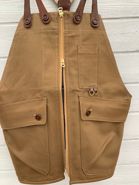 イギリス軍RAF(Royal Air Force)タイプのボタン吊りに、サスペンダー(革付属)を使用したクラシックな雰囲気のBIB。サスペンダーは軍実品を使用しており、とても雰囲気が出ています(物により一部ほんの少々の汚れやダメージ有り)。