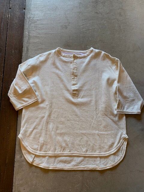 当店では初展開となるヘンリーネック。首回りの開き具合が絶妙で1枚でも様になるアイテムです。