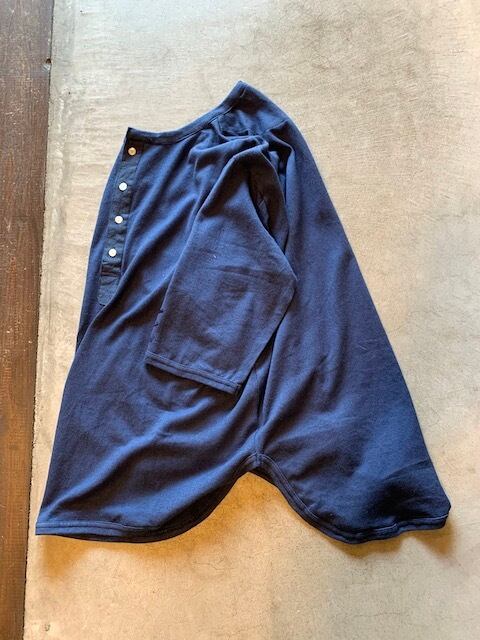 当店では初展開となるヘンリーネック。首回りの開き具合が絶妙で1枚でも様になるアイテムです。