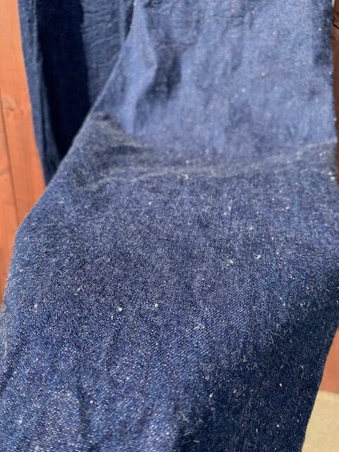 サイズは当店では1という新しく作られたサイズのみの展開。女性であればゆったりと、男性であれば僕くらいの体型(176cm、70kg)でいわゆるアメリカ物のオーバーオールよりウエストが変に余らずキレイなシルエットで穿いていただけます。