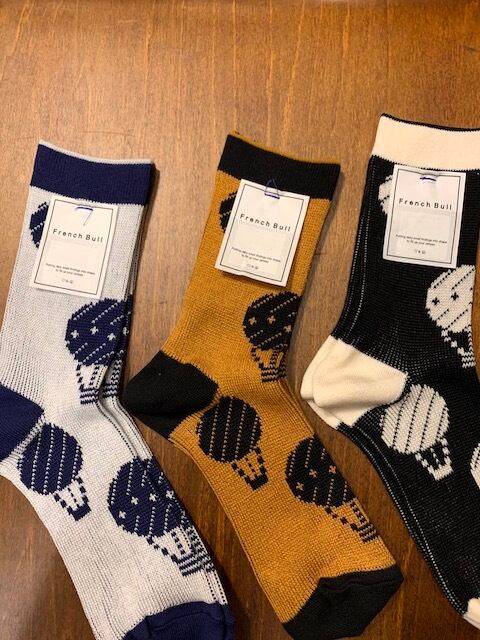 気球をイメージした柄にほどよい厚みを持たせたソックス。光沢感のある糸を使用して編みたて、カジュアルなモチーフを上品な印象に仕上げました。