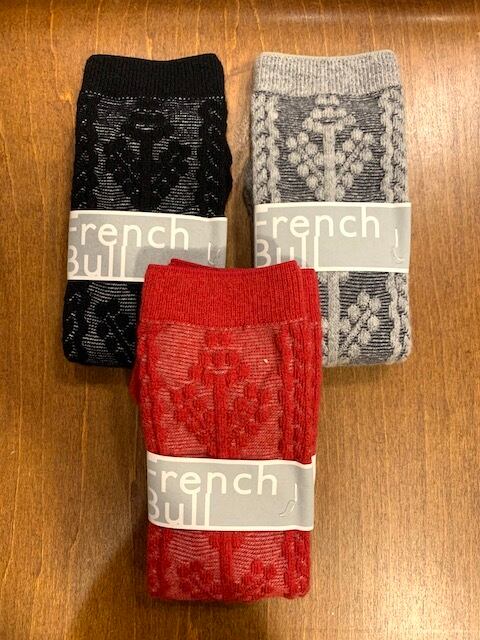 実ったオリーブをイメージしたアイテム。凹凸の立体感があるジャガード編みで作られています。ウール混で程よい厚み。秋冬と活躍しそうなソックスです。