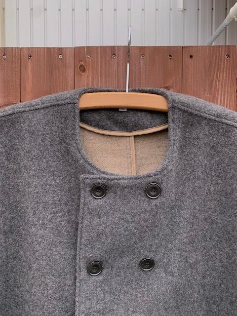 生地はミリタリーのブランケットを使用したダブルフェイスで風合いのある素材感。メルトンのコートとは違い、軽さのある生地感で着易い印象の1枚です。