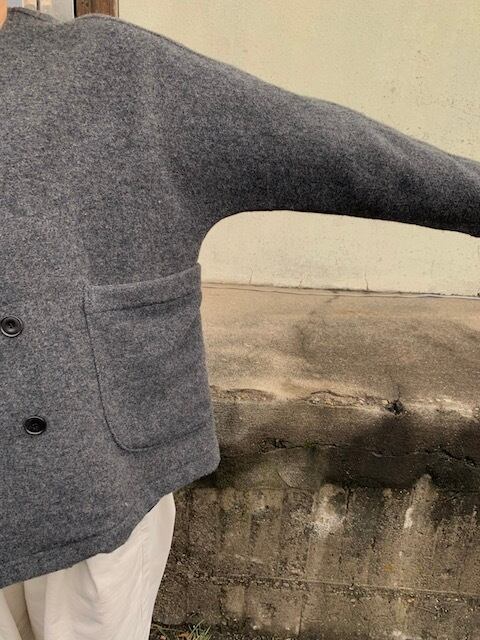 身幅に十分にゆとりを持たせつつ、着丈は短めの作り、丸みを帯びたシルエットが女性らしい仕上がりのジャケットとなっております。