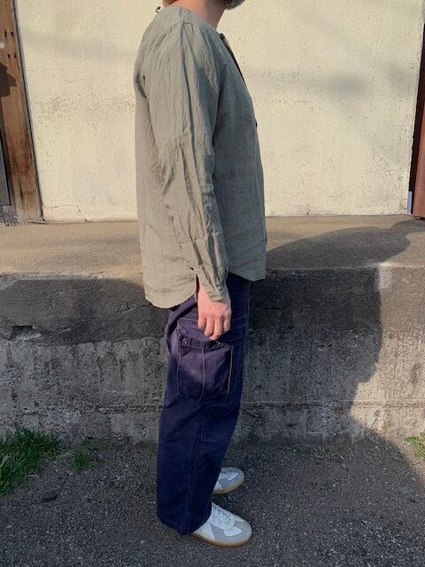 ワンサイズ設定の、上質なリネンを使用したグランパシャツになります。