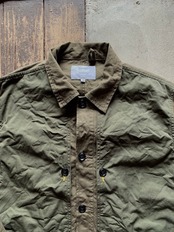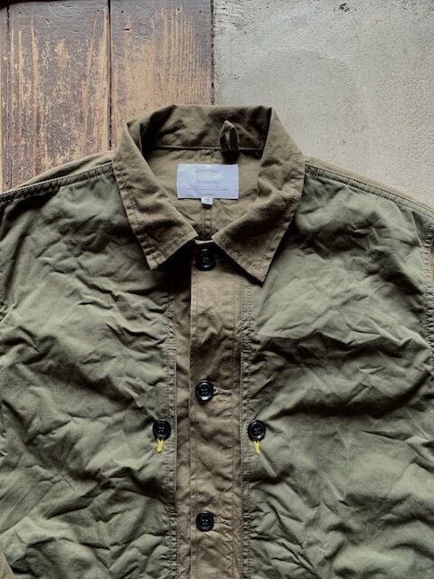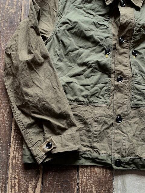 素材は色の濃い部分が高密度のコットンウエポン生地で少し光沢感のある生地感、他身頃はバックサテン地となります。着ていく事でさらに雰囲気が良くなりそうです。
