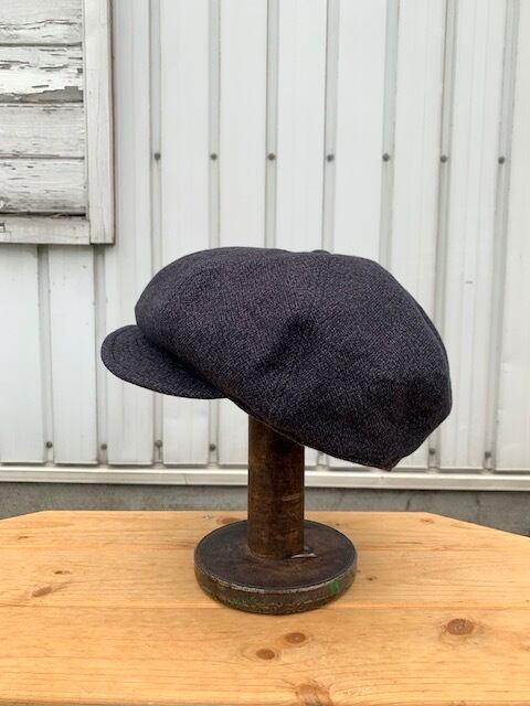 異なる数種類の色の糸を撚り合わせた「撚り杢」のヘリンボンツィード生地を使用したキャスケットです。