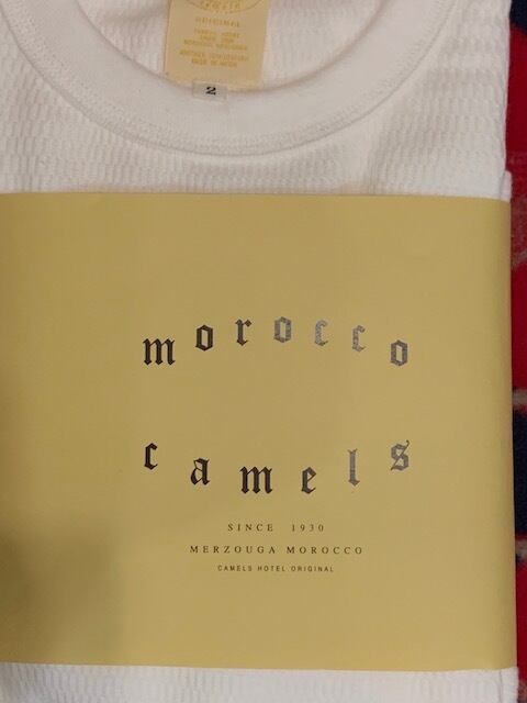 しかし、数年前から当時の工場を稼働させ、アンダーウェア、パジャマシャツなどが再生産され始めました。 襟元には当時のままcamels hotelの名が刻まれています。”