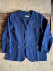 SLOW HANDS / dobby no lapel jacket(UNISEX) / indigo