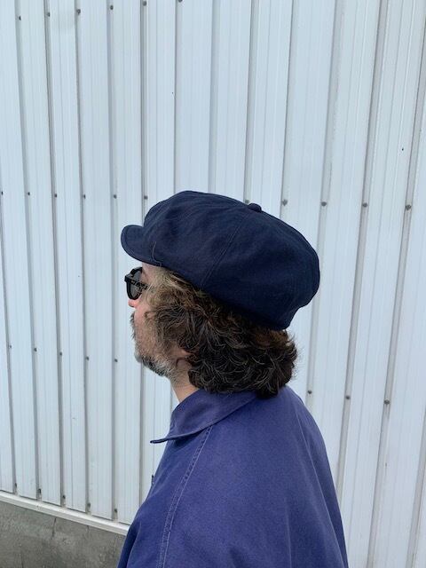 適度なボリュームを持つフォルムのキャスケットは、帽体とブリム(ツバ)が留められていないため後ろに下げてワークキャップっぽく被ることも可能。もちろん左右いずれかに倒して被るスタイルも、バランスよく決まります。