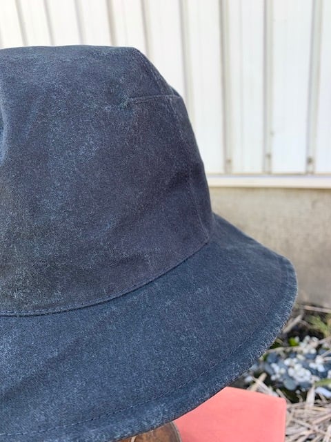 ダーツ仕様によるステッチワークと、少し角のあるクラウンが特徴的なハットになっています。