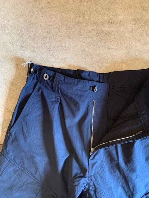 ライトウェイトでパリッとした生地感のコットンナイロンリップストップファブリック、大まかなデザインディテールはオリジナルを踏襲しているものの、素材を軽くしレングスを9分丈程にアレンジしています。