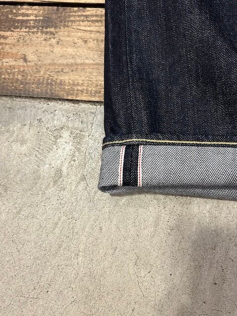 Indigo色は深いインディゴブルー色にイエローステッチが効いたこれぞデニムといった表情。